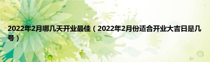 本文,2022年2月哪几天开业最佳,2022年2月份适合开业大吉日是几号到此就分享完毕,希望对大家有所帮助。