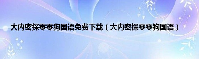 以上就是【大内密探零零狗国语免费下载,大内密探零零狗国语】相关内容。