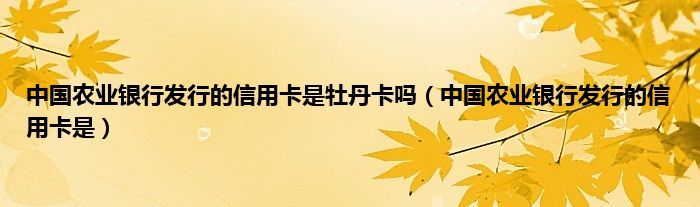 以上就是【中国农业银行发行的信用卡是牡丹卡吗,中国农业银行发行的信用卡是】相关内容。