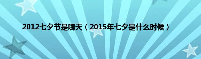 大家好,2012七夕节是哪天,2015年七夕是什么时候很多人还不知道,现在让我们一起来看看吧!