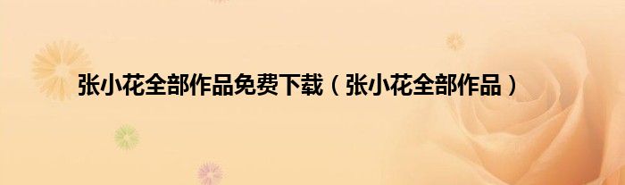 大家好,小问来为大家解答以上问题。张小花全部作品免费下载,张小花全部作品这个很多人还不知道,现在让我们一起来看看吧!