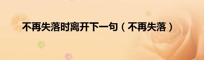 大家好,小问来为大家解答以上问题。不再失落时离开下一句,不再失落这个很多人还不知道,现在让我们一起来看看吧!