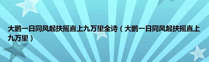 大家好,小问来为大家解答以上问题。大鹏一日同风起扶摇直上九万里全诗,大鹏一日同风起扶摇直上九万里这个很多人还不知道,现在让我们一起来看看吧!