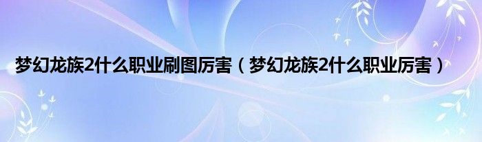 以上就是【梦幻龙族2什么职业刷图厉害,梦幻龙族2什么职业厉害】相关内容。