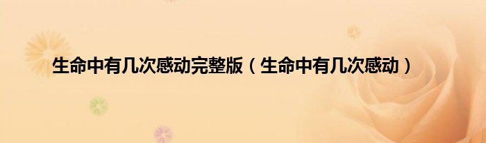 大家好,小问来为大家解答以上问题。生命中有几次感动完整版,生命中有几次感动这个很多人还不知道,现在让我们一起来看看吧!