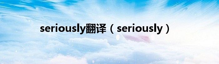 大家好,小问来为大家解答以上问题。seriously翻译,seriously这个很多人还不知道,现在让我们一起来看看吧!