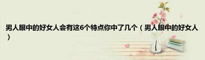 以上就是【男人眼中的好女人会有这6个特点你中了几个,男人眼中的好女人】相关内容。