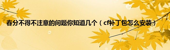以上就是【春分不得不注意的问题你知道几个,cf补丁包怎么安装】相关内容。