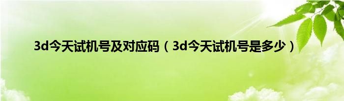 大家好,小问来为大家解答以上问题。3d今天试机号及对应码,3d今天试机号是多少这个很多人还不知道,现在让我们一起来看看吧!