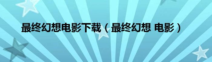 大家好,小问来为大家解答以上问题。最终幻想电影下载,最终幻想 电影这个很多人还不知道,现在让我们一起来看看吧!