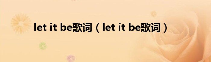 大家好,小问来为大家解答以上问题。let it be歌词,let it be歌词这个很多人还不知道,现在让我们一起来看看吧!