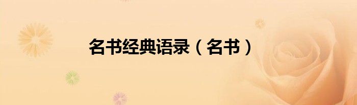 大家好,小问来为大家解答以上问题。名书经典语录,名书这个很多人还不知道,现在让我们一起来看看吧!