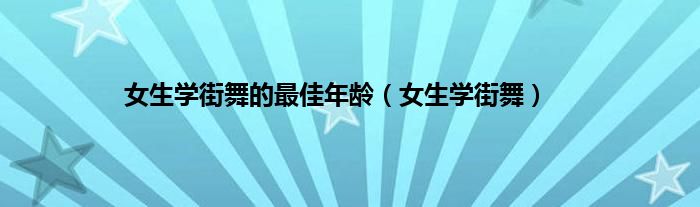 大家好,小问来为大家解答以上问题。女生学街舞的最佳年龄,女生学街舞这个很多人还不知道,现在让我们一起来看看吧!