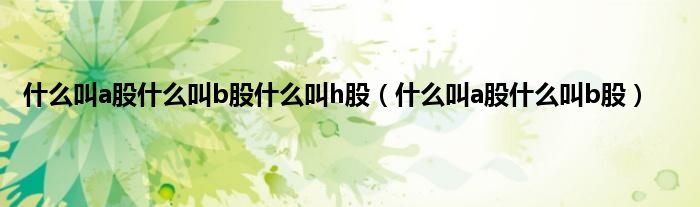 以上就是【什么叫a股什么叫b股什么叫h股,什么叫a股什么叫b股】相关内容。