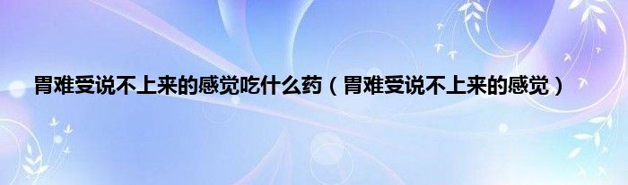 以上就是【胃难受说不上来的感觉吃什么药,胃难受说不上来的感觉】相关内容。