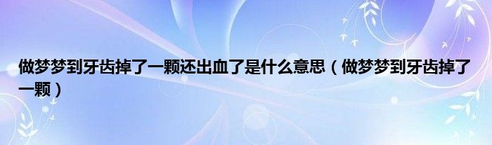 大家好,综合小编来为大家讲解下。做梦梦到牙齿掉了一颗还出血了是什么意思,做梦梦到牙齿掉了一颗这个很多人还不知道,现在让我们一起来看看吧!