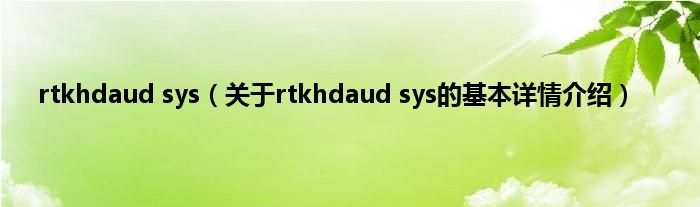 本文关于rtkhdaud sys的基本详情介绍就讲解完毕,希望对大家有所帮助。