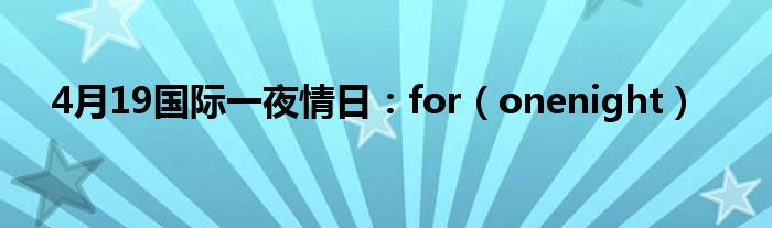本文4月19国际一夜情日:for,onenight到此分享完毕,希望对大家有所帮助。