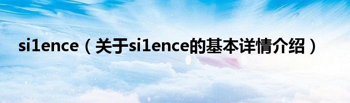 本文关于si1ence的基本详情介绍就讲解完毕,希望对大家有所帮助。