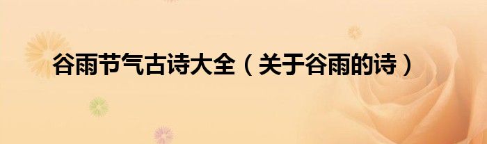 大家好,综合小编来为大家讲解下。谷雨节气古诗大全,关于谷雨的诗这个很多人还不知道,现在让我们一起来看看吧!