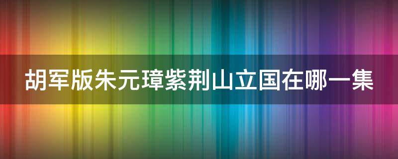 胡军版朱元璋紫荆山立国在第21集,小明王殡天后,朱元璋紫金山巅登基,大明王朝建立。《朱元璋》是由冯小宁执导,胡军、剧雪、郑晓宁、鄂布斯等主演的历史题材电视剧。该剧改编自朱苏进的长篇历史小说《朱元璋》,讲述了朱元璋从乞丐布衣到开国皇帝的传奇一生。该剧于2008年7月23日在东方电影频道首播。元朝末年,政治统治日趋腐败,各地义军云起,天下陷入战乱时,朱元璋从一个乞丐参加到义军,南征北战,一步步走上了中国历史的舞台,最终在鄱阳湖大水战中消灭了劲敌陈友谅,创建了明朝。