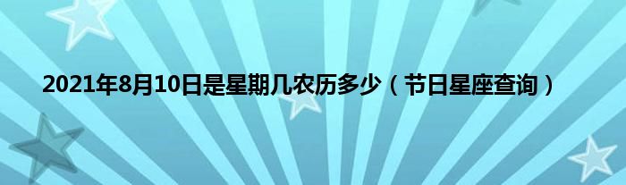 大家好,综合小编来为大家讲解下。2021年8月10日是星期几农历多少,节日星座查询这个很多人还不知道,现在让我们一起来看看吧!