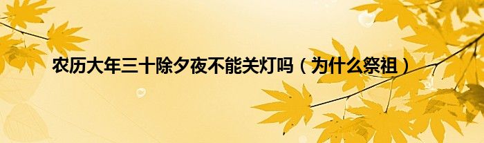 本文农历大年三十除夕夜不能关灯吗,为什么祭祖到此分享完毕,希望对大家有所帮助。