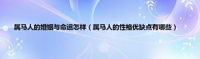 大家好,综合小编来为大家讲解下。属马人的婚姻与命运怎样,属马人的性格优缺点有哪些这个很多人还不知道,现在让我们一起来看看吧!