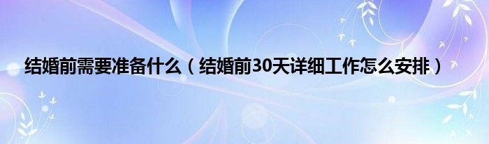 大家好,综合小编来为大家讲解下。结婚前需要准备什么,结婚前30天详细工作怎么安排这个很多人还不知道,现在让我们一起来看看吧!