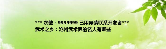 大家好,综合小编来为大家讲解下。*** 次数:9999999 已用完请联系开发者*** 武术之乡:沧州武术界的名人有哪些这个很多人还不知道,现在让我们一起来看看吧!