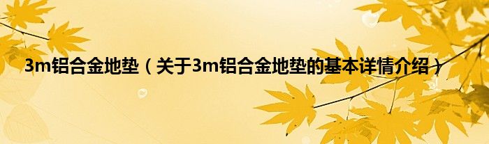 本文关于3m铝合金地垫的基本详情介绍就讲解完毕,希望对大家有所帮助。