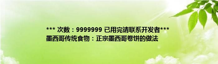 本文*** 次数:9999999 已用完请联系开发者*** 墨西哥传统食物:正宗墨西哥卷饼的做法到此分享完毕,希望对大家有所帮助。