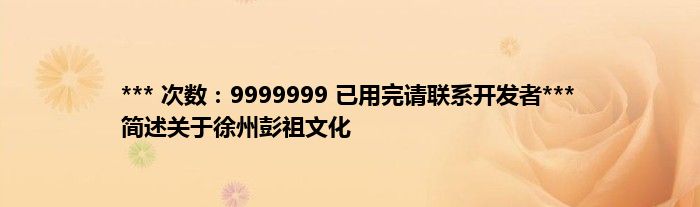 大家好,综合小编来为大家讲解下。*** 次数:9999999 已用完请联系开发者*** 简述关于徐州彭祖文化这个很多人还不知道,现在让我们一起来看看吧!