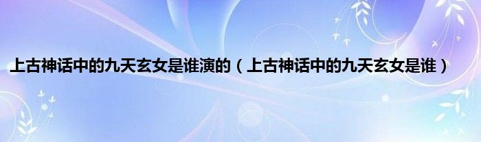 大家好,综合小编来为大家讲解下。上古神话中的九天玄女是谁演的,上古神话中的九天玄女是谁这个很多人还不知道,现在让我们一起来看看吧!