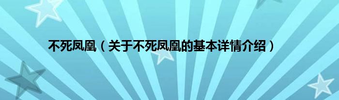本文关于不死凤凰的基本详情介绍就讲解完毕,希望对大家有所帮助。