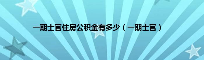 以上就是【一期士官住房公积金有多少,一期士官】相关内容。