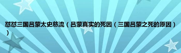 大家好,综合小编来为大家讲解下怼怼三国吕蒙太史慈流,吕蒙真实的死因,三国吕蒙之死的原因这个很多人还不知道,现在让我们一起来看看吧!