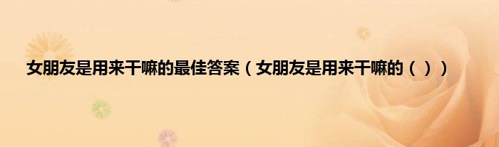 大家好,综合小编来为大家讲解下女朋友是用来干嘛的最佳答案,女朋友是用来干嘛的,这个很多人还不知道,现在让我们一起来看看吧!