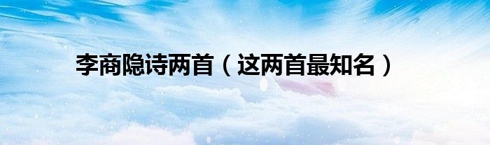 欢迎观看本篇文章,小升来为大家解答以上问题。李商隐诗两首,这两首最知名很多人还不知道,现在让我们一起来看看吧!