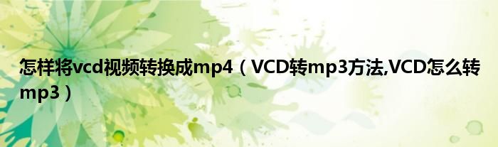 大家好,综合小编来为大家讲解下怎样将vcd视频转换成mp4,VCD转mp3方法,VCD怎么转mp3这个很多人还不知道,现在让我们一起来看看吧!