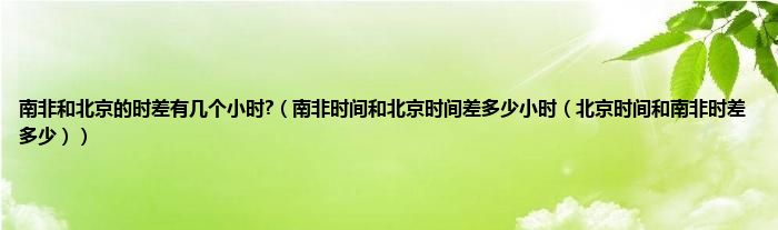 大家好,综合小编来为大家讲解下南非和北京的时差有几个小时?,南非时间和北京时间差多少小时,北京时间和南非时差多少这个很多人还不知道,现在让我们一起来看看吧!