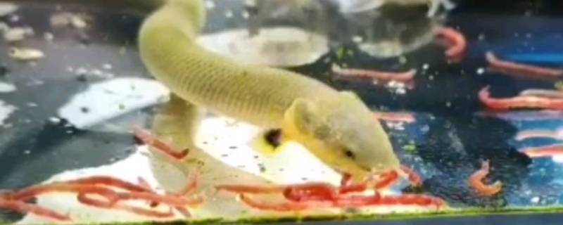 草绳恐龙鱼咬小鱼。草绳恐龙鱼是一种古老的鱼类,在水族里有活化石之称,和龙鱼、肺鱼一样属于活化石的大型鱼类。恐龙鱼体格强建,生长快速,饲养恐龙鱼并不难,小鱼、小虾之类的活饵均可接受,冰冻南极虾、鱼粒之类的食物也可喂食,它们不挑饵食的。幼年时期可以喂红虫或蚯蚓。分布区域有非洲塞内加尔、赞比亚、尼日利亚、喀坦加的乍得湖、白尼罗河。成鱼体长60公分左右。适合水温为22-26度,酸碱度(ph)在6.8-7.2。