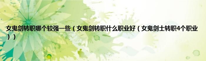 大家好,综合小编来为大家讲解下女鬼剑转职哪个较强一些,女鬼剑转职什么职业好,女鬼剑士转职4个职业这个很多人还不知道,现在让我们一起来看看吧!