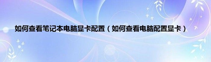 大家好,综合小编来为大家讲解下如何查看笔记本电脑显卡配置,如何查看电脑配置显卡这个很多人还不知道,现在让我们一起来看看吧!
