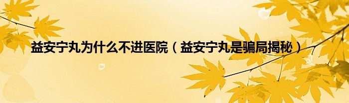 以上就是【益安宁丸为什么不进医院,益安宁丸是骗局揭秘】相关内容。