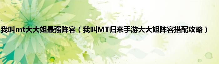 大家好,综合小编来为大家讲解下我叫mt大大姐最强阵容,我叫MT归来手游大大姐阵容搭配攻略这个很多人还不知道,现在让我们一起来看看吧!