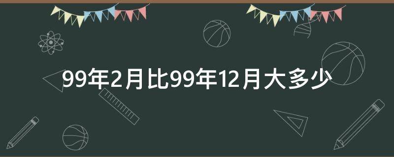 99年2月比99年12月大10个月,因为2月与12月之间差10个月。月是历法中的一种时间单位,传统上都是以月相变化的周期作为一个月的长度,一个月的长度大约是29.53日,即一轮朔望月。在旧石器时代的早期,人类就已经会依据月相来计算日子。朔望月仍是许多历法的基石。一年分为12个月;中国农历一年也为12个月,农历的闰年为13个月,多出的一个月称为闰月。月份来源的传说来自于《山海经》中的《常羲生月》。《山海经》记载,帝俊有两位妻子,羲和与常羲。羲和生日,常羲生月,所以常羲也被称为月母。