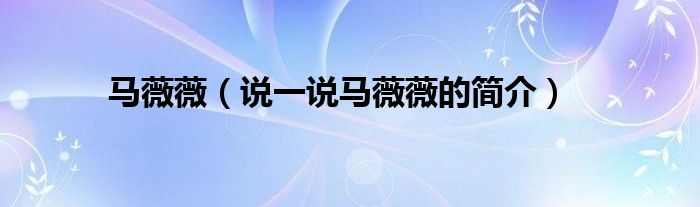 夏弥来为大家解答以下的问题,马薇薇,说一说马薇薇的简介,现在让我们一起来看看吧!