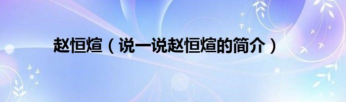夏弥来为大家解答以下的问题,赵恒煊,说一说赵恒煊的简介,现在让我们一起来看看吧!