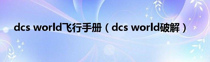 关于dcs world飞行手册,dcs world破解这个很多人还不知道,今天菲菲来为大家解答以上的问题,现在让我们一起来看看吧!